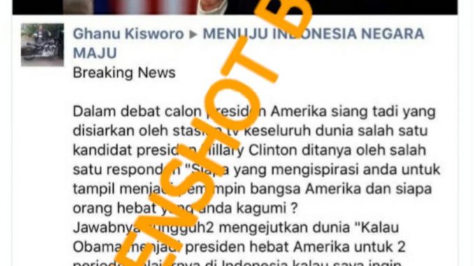 [SALAH] Hillary Clinton Mengaku Terinspirasi oleh Sri Mulyani dan Jokowi pada Debat Calon Presiden Amerika Serikat
