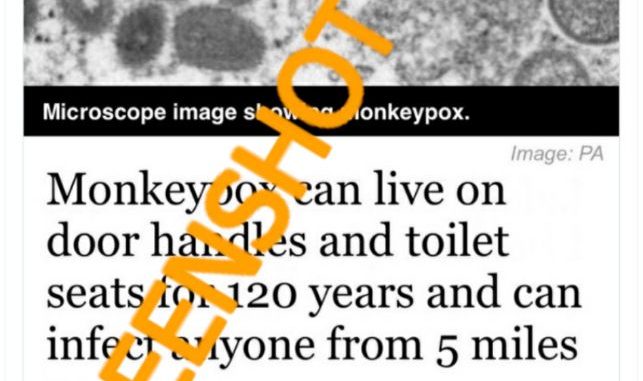 “Cacar Monyet dapat hidup di gagang pintu dan tempat duduk toilet selama 120 tahun dan dapat menular ke orang yang berada di jarak 5 mil.”