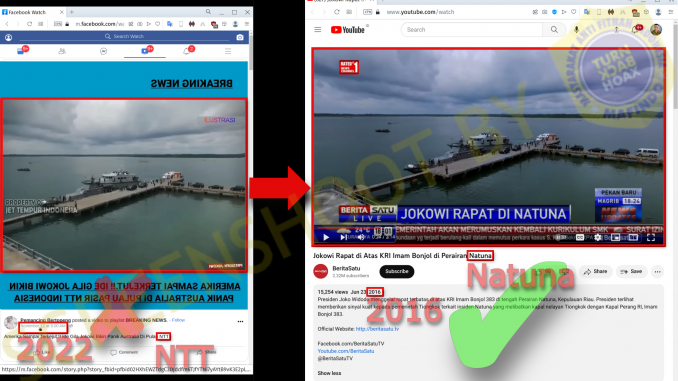 SUMBER membagikan konten yang isinya menimbulkan kesimpulan yang MENYESATKAN. FAKTA: selain menggunakan gambar pratinjau (thumbnail) dan berisi potongan-potongan video dengan orientasi yang dibalik (mirror/flip) dari peristiwa yang TIDAK berkaitan, video yang dibagikan sebenarnya berisi pembacaan artikel dengan mengganti “Natuna” ke “NTT”.