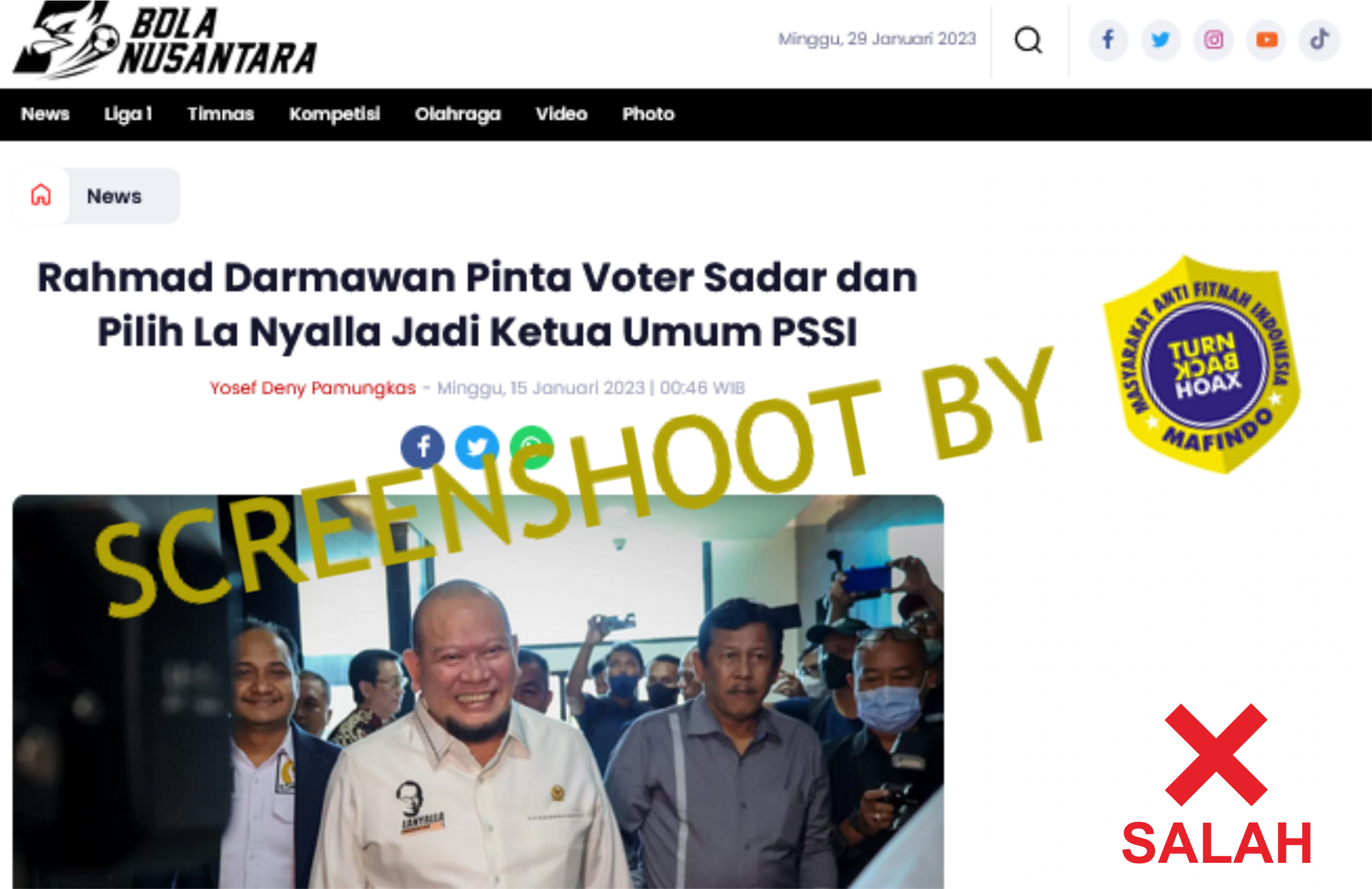 Pada 15 Januari 2023 lalu muncul sebuah berita yang diunggah di media online bolanusantara.com dengan membawa klaim bahwa Rahmad Darmawan memberikan dukungan kepada salah satu kandidat ketua umum PSSI, La Nyalla Mattalitti.