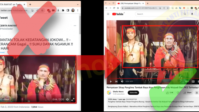 Salah satu video dengan bagian yang identik dengan konteks informasi yang BENAR, Shello News di YouTube: “Panglima Tambak Baya Titisan Panglima Burung : Kecam Komentar Edy Mulyadi Yang Menghina Warga Kalimantan”