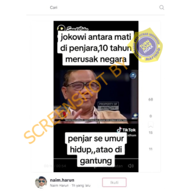 Video pertama yang dicuplik adalah video yang identik dengan video yang diunggah akun Youtube Sekretariat Presiden pada tanggal 28 November 2019 dengan judul: “Presiden Jokowi Menrima Delegasi Uni Eropa-ASEAN Business COuncil, 28 November 2019 di Istana Merdeka, Jakarta. Dalam video tersebut Presiden Jokowi menjelaskan bahwa Indonesia memiliki hubungan yang baik dengan Uni Eropa.