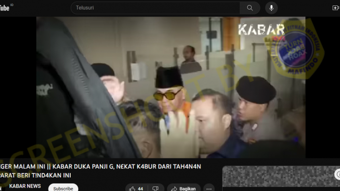 Kanal YouTube KABAR NEWS (https://www.youtube.com/@kabarnews672) pada 23 Agustus 2023 mengunggah video dengan judul dan thumbnail yang mengklaim bahwa pendiri Pondok Pesantren Al Zaytun, Panji Gumilang, nekat kabur dari sel tahanan. Sebelumnya diketahui bahwa Ponpes Al Zaytun sendiri pernah menjadi sorotan lantaran diduga mengajarkan ajaran menyimpang.