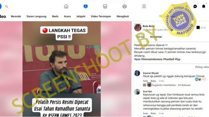 Beredar sebuah video dari akun facebook bernama Bola Bola dengan narasi yang menyatakan bahwa pelatih Persis Solo Leonardo Medina dipecat akibat tidak melepas Ramadhan Sananta ke Timnas untuk ajang Asian Games 2023.