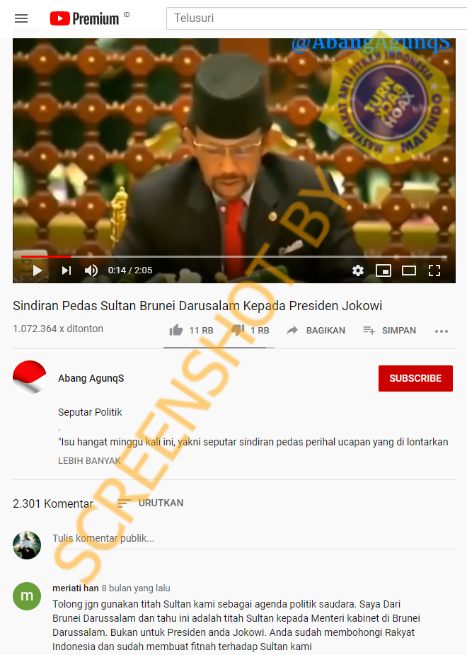 Pada video itu tersemat teks sebagai berikut (diterjemahkan ke bahasa Indonesia):