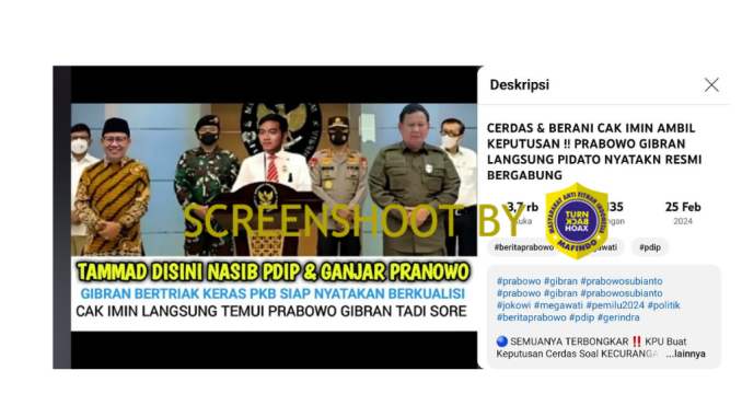 Akun YouTube “Info Bola Terbaru” pada 25 Februari 2024 mengunggah video dengan klaim bahwa Cak Imin memutuskan bergabung dengan Prabowo Gibran. Judul tersebut tidak sesuai dengan isi dari video yang diunggah. Unggahan tersebut sama sekali tidak membahas sebagaimana klaim video, melainkan hanya membahas partai-partai yang diprediksi akan menjadi oposisi dan partai yang akan bergabung dengan Prabowo-Gibran. Dan narasi dalam video diambil dari artikel milik antara Kompas.com berjudul “Nasdem-PKB Diprediksi Gabung Prabowo-Gibran, PDI-P dan PKS Oposisi” yang diupload 19 Februari 2024 lalu.