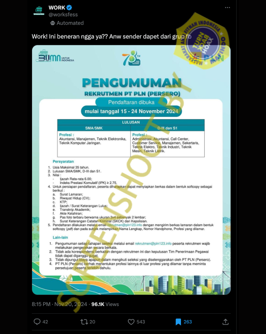 Video yang beredar sesungguhnya gabungan dari bagian-bagian video pembacaan tuntutan dalam sengketa Pilpres 2024 di MK. Video telah direkayasa sehingga seakan-akan memperlihatkan pembacaan putusan hakim, padahal bukan.