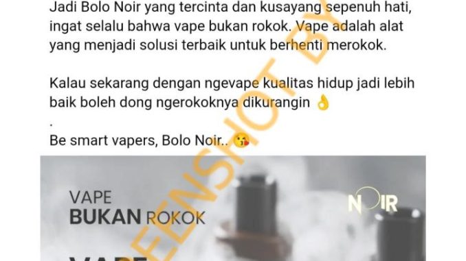 Jadi Bolo Noir yang tercinta dan kusayang sepenuh hati, ingat selalu bahwa vape bukan rokok. Vape adalah alat yang menjadi solusi terbaik untuk berhenti merokok.