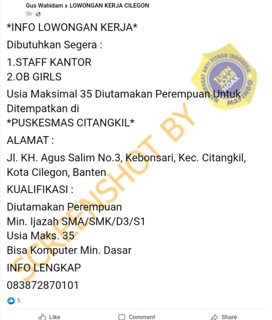 Setelah ditelusuri pada akun resmi Dinas Perkebunan (Disbun) Kalimantan Timur ditemukan klarifikasi terhadap akun-akun yang beredar. Pada akun Facebook Dinas Perkebunan Kalimantan Timur mengunggah tangkapan layar akun WhatsApp tersebut dan menandainya “HOAX”.