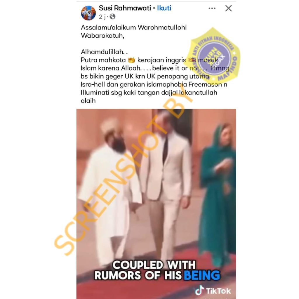Sebuah akun facebook dengan nama Susi Rahmawati mengunggah sebuah video yang menampilkan sosok putera mahkota kerajaan Inggris, Pangeran William. Video tersebut diunggah dengan klaim Pangeran William masuk Islam.