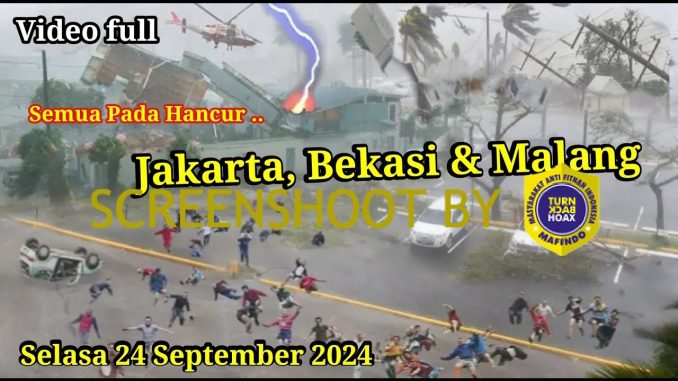 Telah beredar sebuah video di channel YoutTube yang menyatakan bahwa telah terjadi badai dahsyat yang menghantam Jakarta, Bekasi & Malang pada 24 September 2024 dan menyebabkan semua porak poranda.