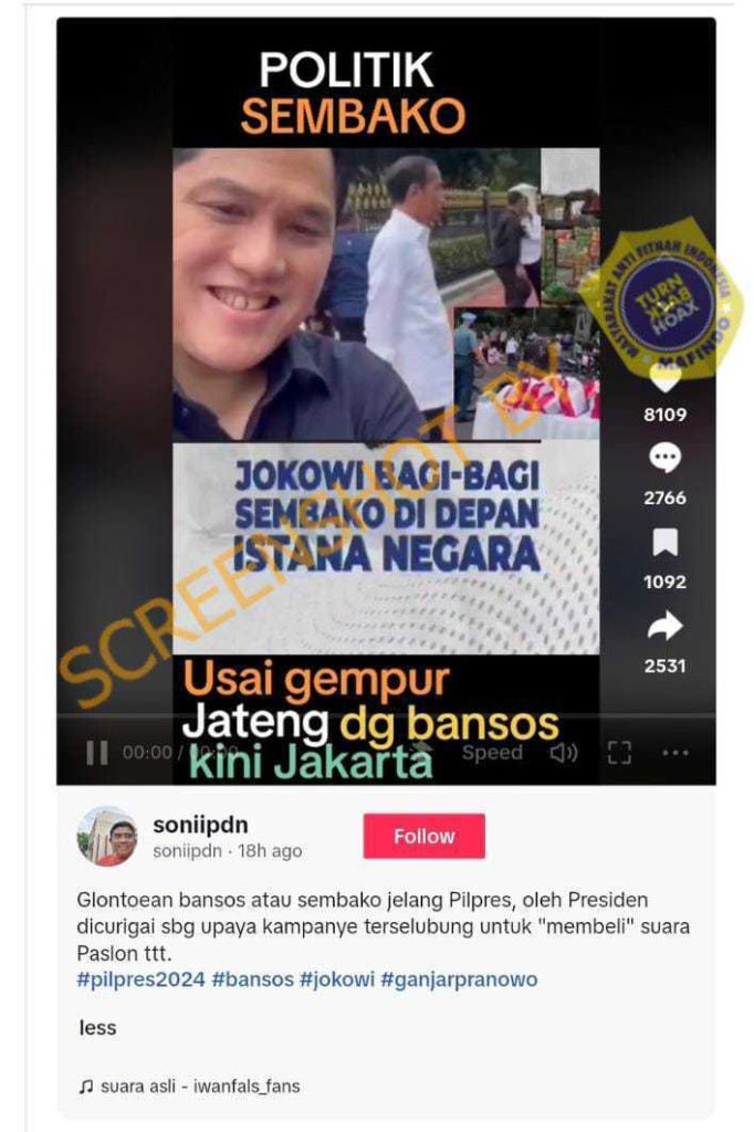 Sebuah unggahan di Facebook [arsip] dari akun “Jamal Said” pada Sabtu (12/10/2024) menyebarkan potongan video Presiden FIFA Gianni Infantino dan menyematkan narasi bahwa FIFA membatalkan gol kedua Bahrain saat melawan Timnas Indonesia pada Kamis (10/10/2024).