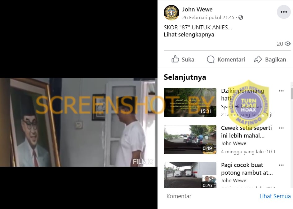 Narasi tersebut disampaikan dalam video yang diunggah kanal YouTube PakDe Sindiran Sindirun berjudul DIDUKUNG ANIES BASWEDAN SUARA PRAMONO RANO JUSTRU TERJUN BEBAS DAN PASANGAN RIDO Tembus 53% pada Selasa (26/11/2024).