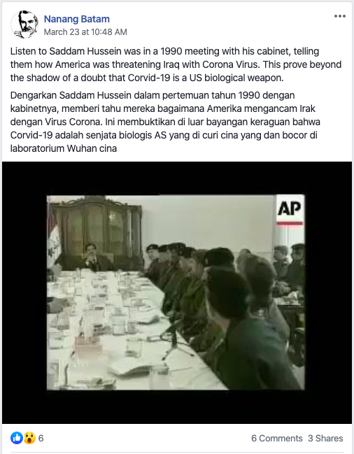 Sebuah video narasi yang beredar di Threads [ arsip ] memuat klaim adanya indikasi penggunaan senjata biologis (biological warfare) yang diluncurkan menjelang Ramadan dan Lebaran alias Hari Raya Idul Fitri.