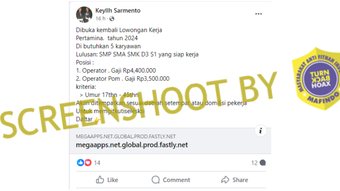 Unggahan berisi informasi “lowongan kerja di SCTV dan Indosiar” disertai tautan tak resmi itu merupakan konten tiruan (impostor content) untuk modus penipuan.