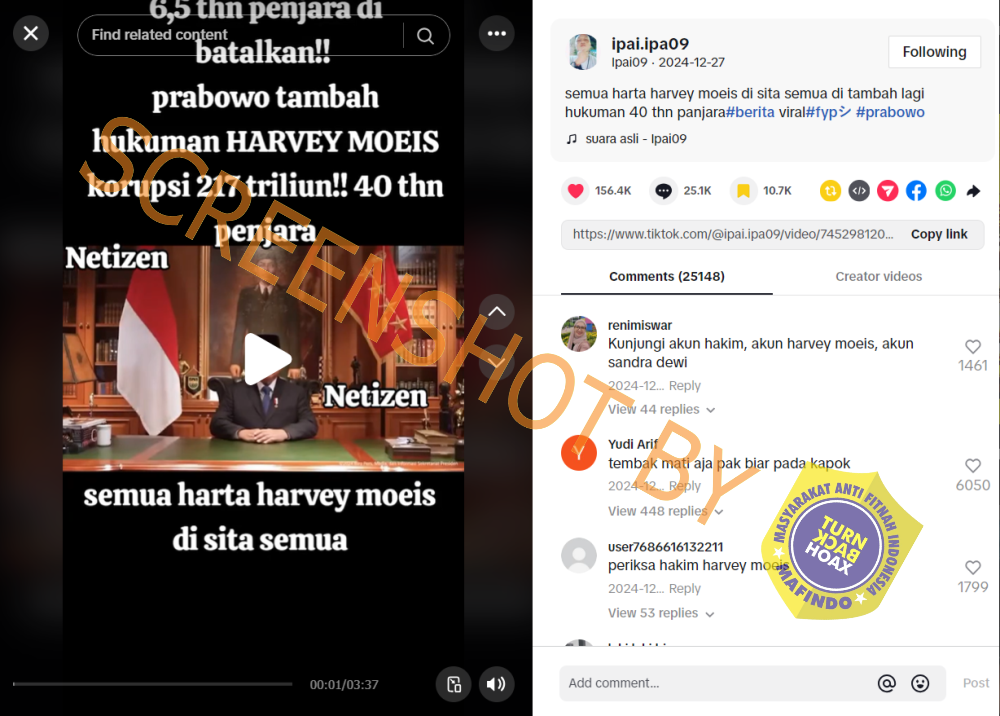 Hingga Senin (24/3/25), unggahan telah mendapatkan 131 tanda suka, 40 komentar dan telah dibagikan ulang 3 kali.