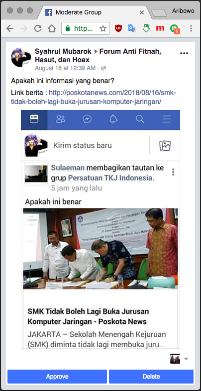 Dengan demikian, tangkapan layar artikel dalam unggahan tersebut merupakan hasil suntingan.