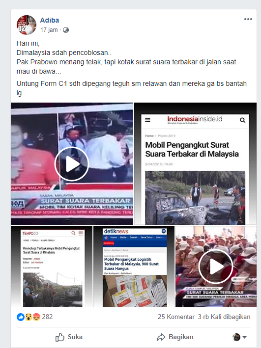 Konten yang disebarkan akun Facebook tersebut telah 9 kali dibagikan dan mendapat 122 komentar dari warganet.