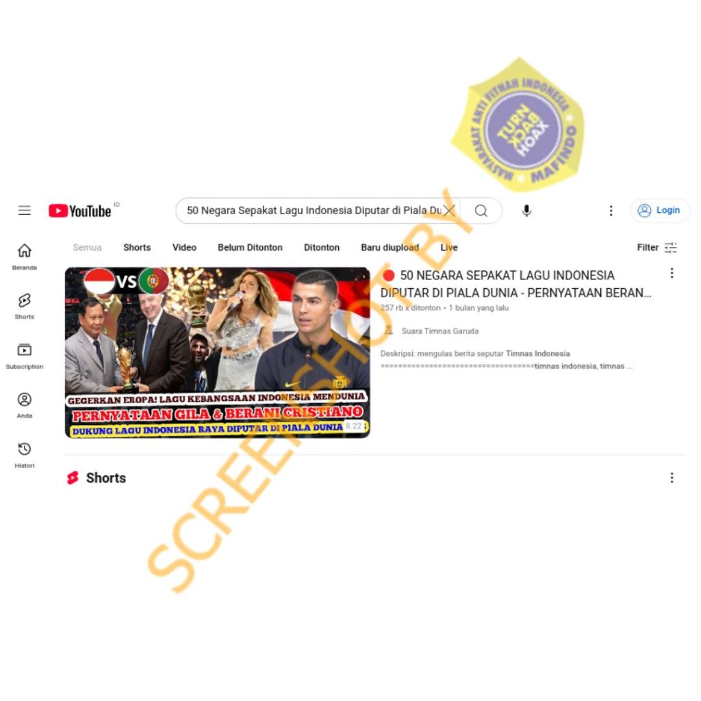 Penelusuran juga dilakukan dengan menelusuri gambar Prabowo yang digunakan pada konten tersebut. Penelusuran mengarah pada konten yang diunggah akun TikTok kumparan pada 22 Maret 2025.