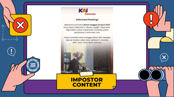 Unggahan berisi klaim “naik KRL tidak bisa pakai e-money Bank Mandiri” merupakan konten tiruan (impostor content).