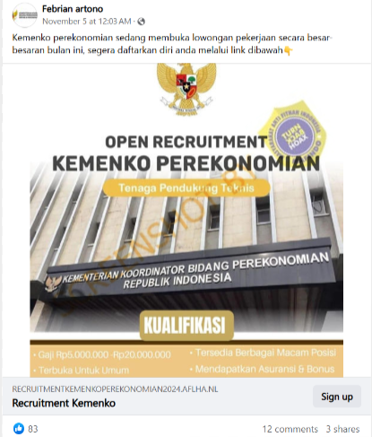 Setelah diperiksa, tautan yang dicantumkan dalam unggahan Facebook tersebut tidak mengarah ke situs resmi untuk mengecek penerima BSU.
