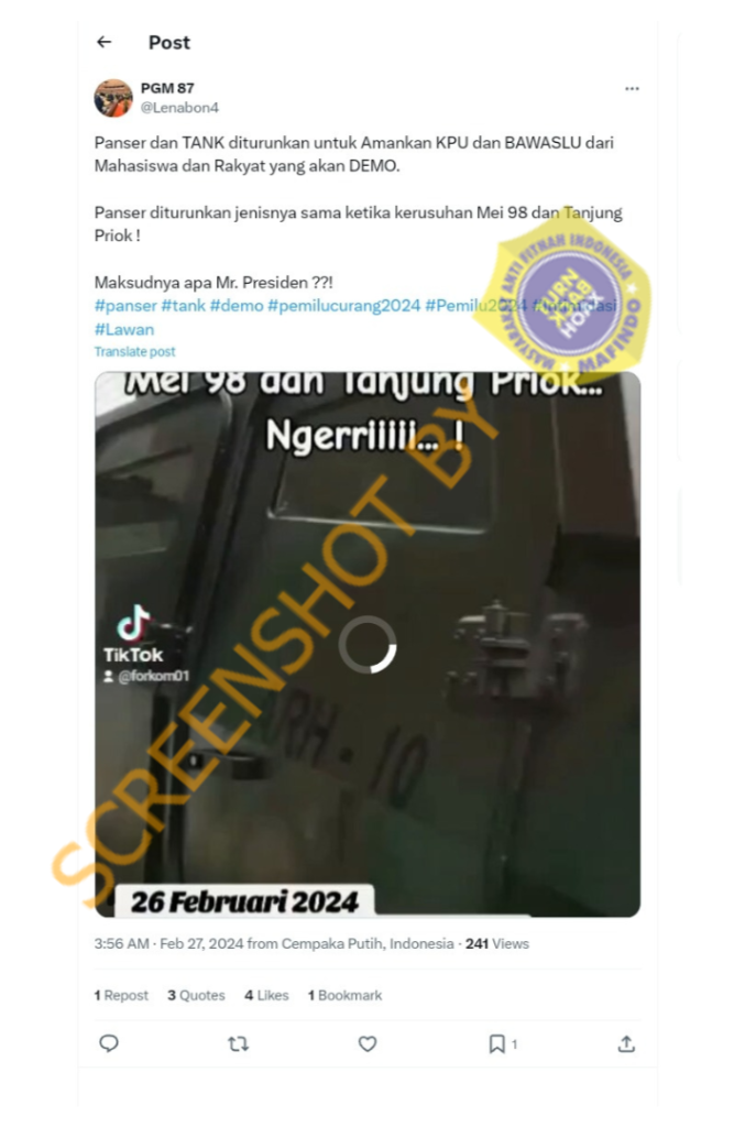 Konten dari akal imitasi yang dilabeli oleh akun-akun pendukung pemerintah. [Sumber: TikTok]