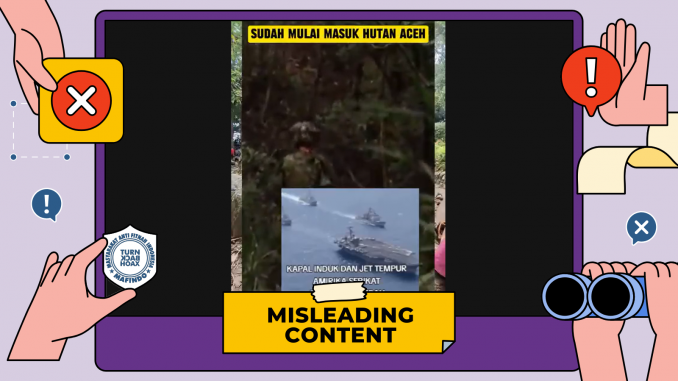 Unggahan berisi klaim “Tentara Amerika sudah masuk hutan Aceh” merupakan konten yang menyesatkan (misleading content).