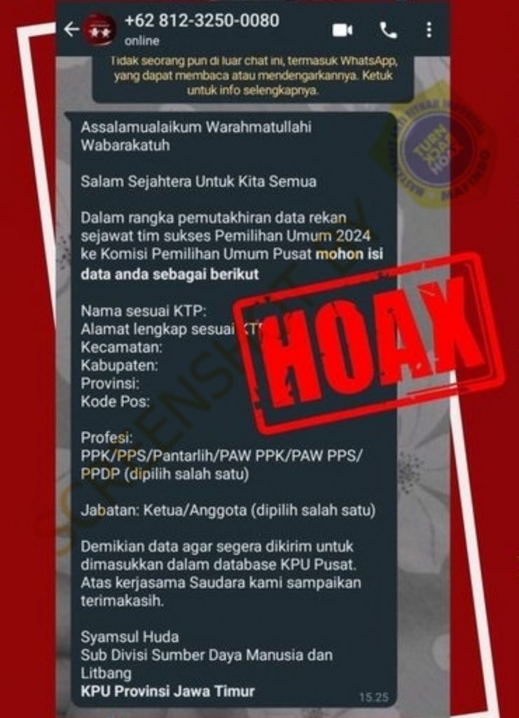 Sementara itu, tautan yang disebarkan di Facebook mengarah ke situs terindikasi phishing. Tautan itu meminta data pribadi seperti nama, asal provinsi, dan nomor akun Telegram aktif.
