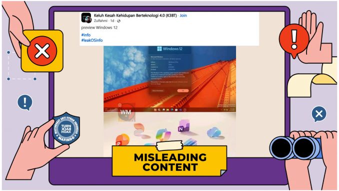 Unggahan berisi klaim “tampilan Windows 12” adalah konten yang menyesatkan (misleading content).