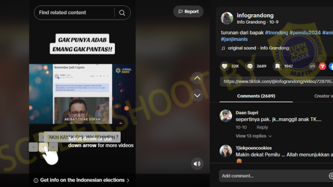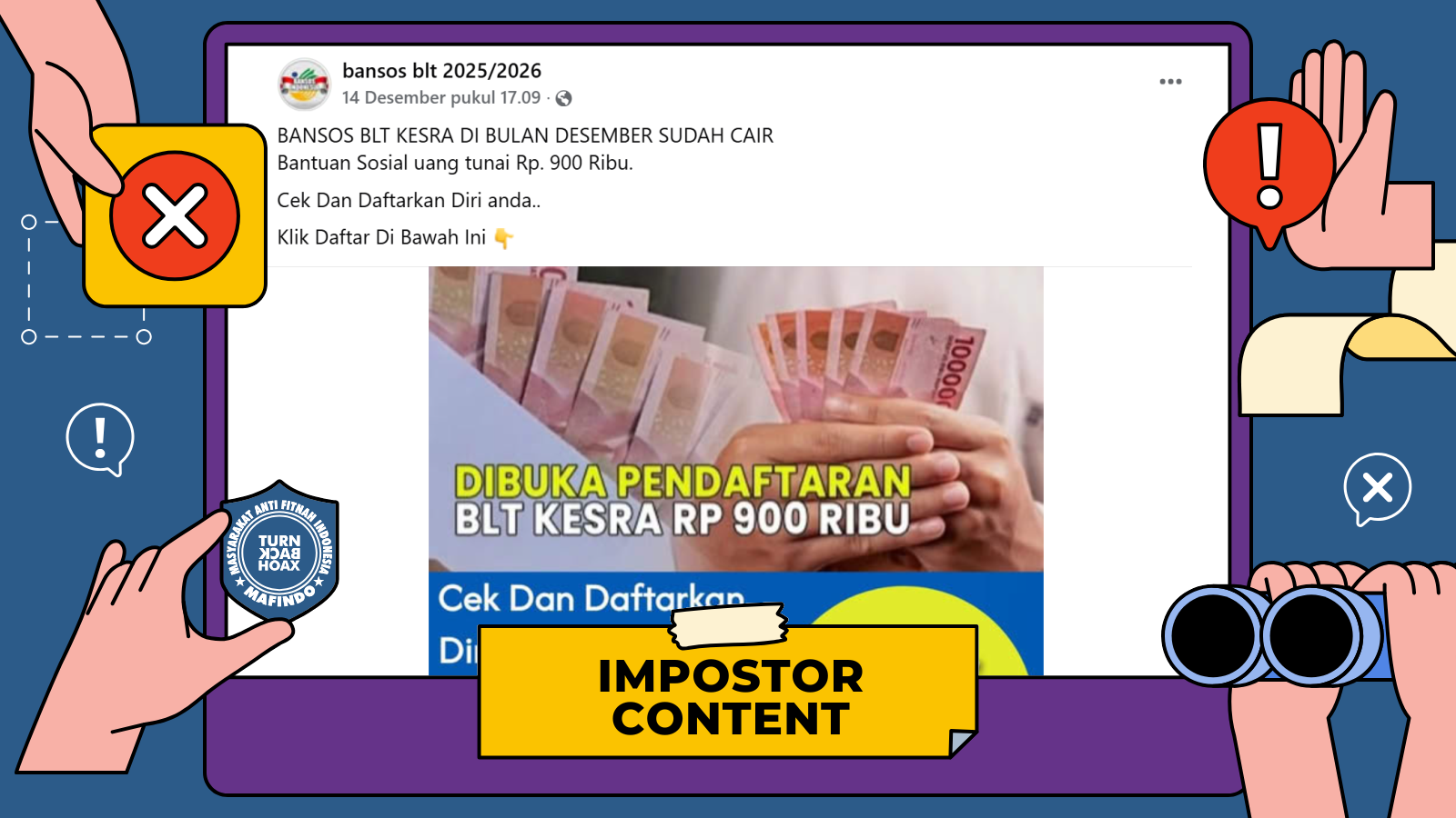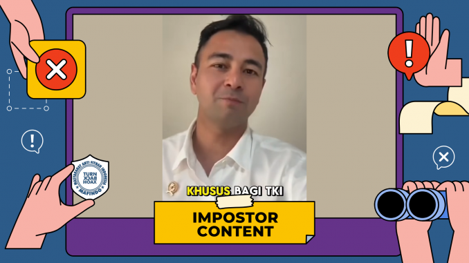 Unggahan video berisi klaim “Raffi Ahmad bagi-bagi bansos untuk TKI” merupakan konten tiruan (impostor content).