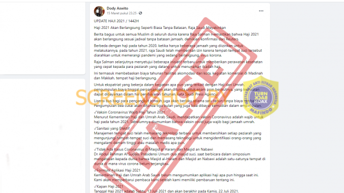 Cek Fakta Liputan6.com menelusuri dan menemukan artikel yang identik dengan postingan. Artikel itu diunggah situs Gelora dengan foto dan waktu yang sama dengan postingan.