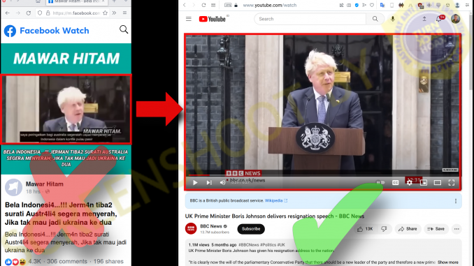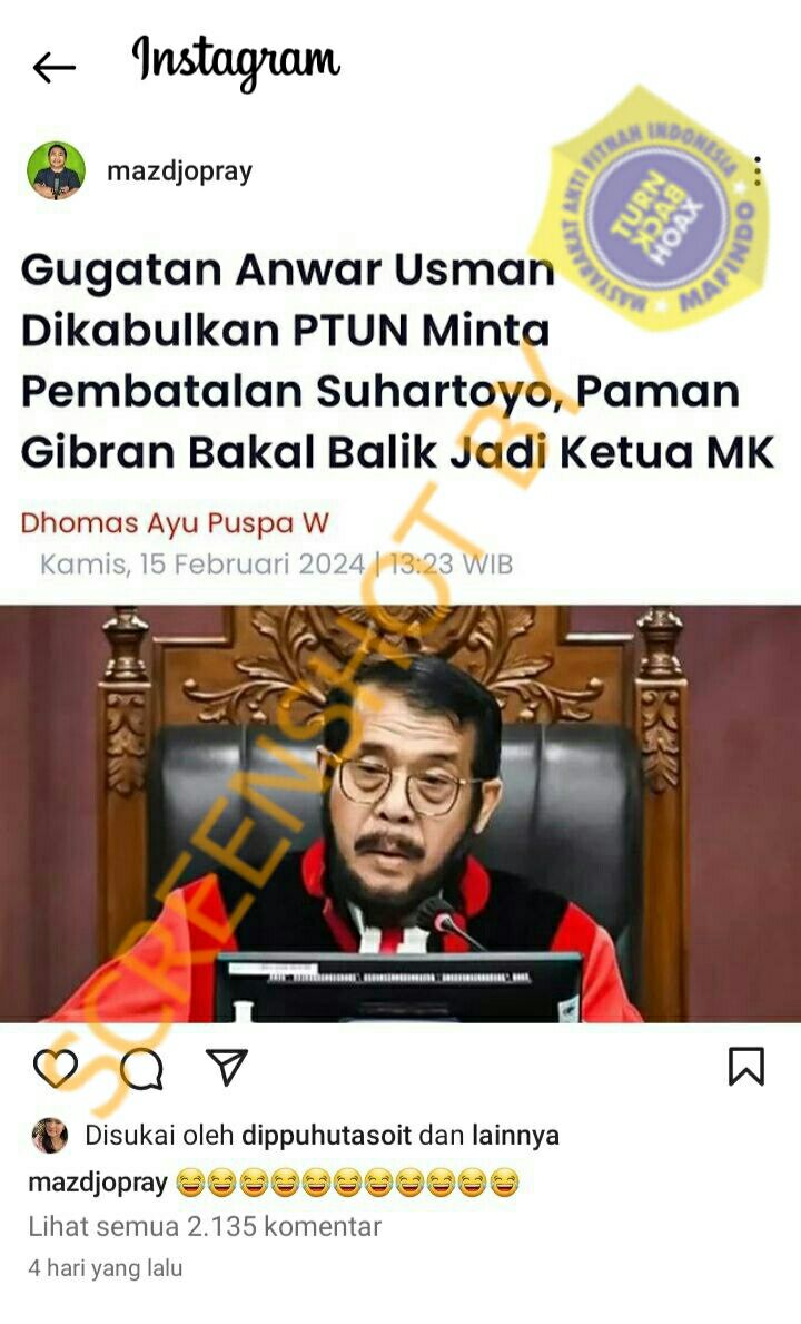Dalam postingannya terdapat cuplikan layar artikel dari Gelora News berjudul: