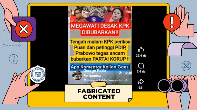 Unggahan berisi klaim “tengah malam KPK periksa Puan Maharani dan petinggi PDIP” merupakan konten palsu (fabricated content).