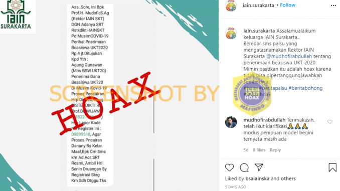 Hasil pemeriksaan menunjukkan bahwa tautan yang dibagikan dalam unggahan tidak terkait dengan Kementerian Ketenagakerjaan.