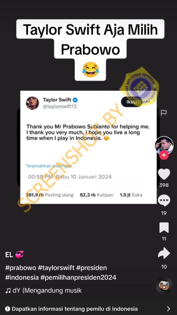 Hingga artikel ini ditulis pada Rabu (31/12/2025), unggahan tersebut telah mendapatkan 333 likes, 16 komentar dan 9 kali dibagikan.