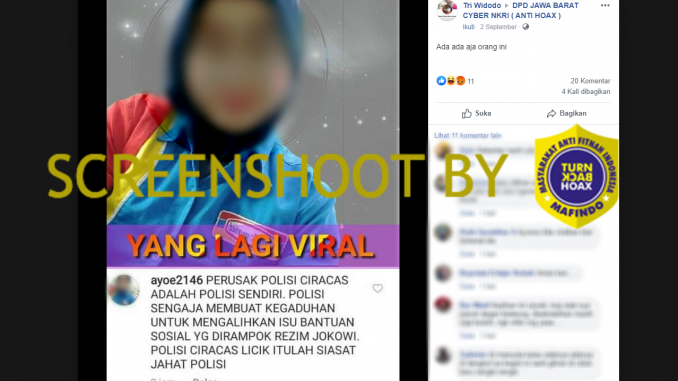 Tirto juga menemukan unggahan serupa di Facebook yang diunggah di grup obrolan “Sorotan”, serta pada akun “Portal Informasi”, “Davina Karamoy”, dan akun Threads “afdhal.af”.