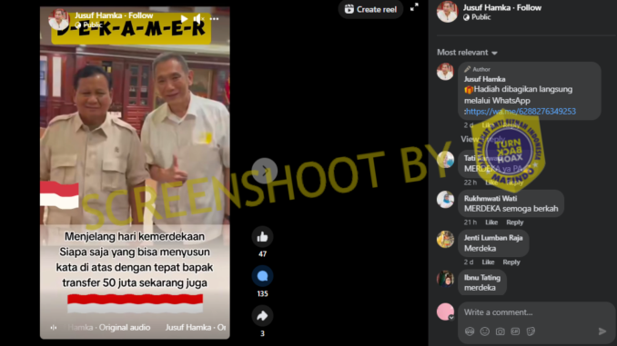 Tirto juga menemukan unggahan serupa di Facebook yang diunggah di grup obrolan “Sorotan”, serta pada akun “Portal Informasi”, “Davina Karamoy”, dan akun Threads “afdhal.af”.