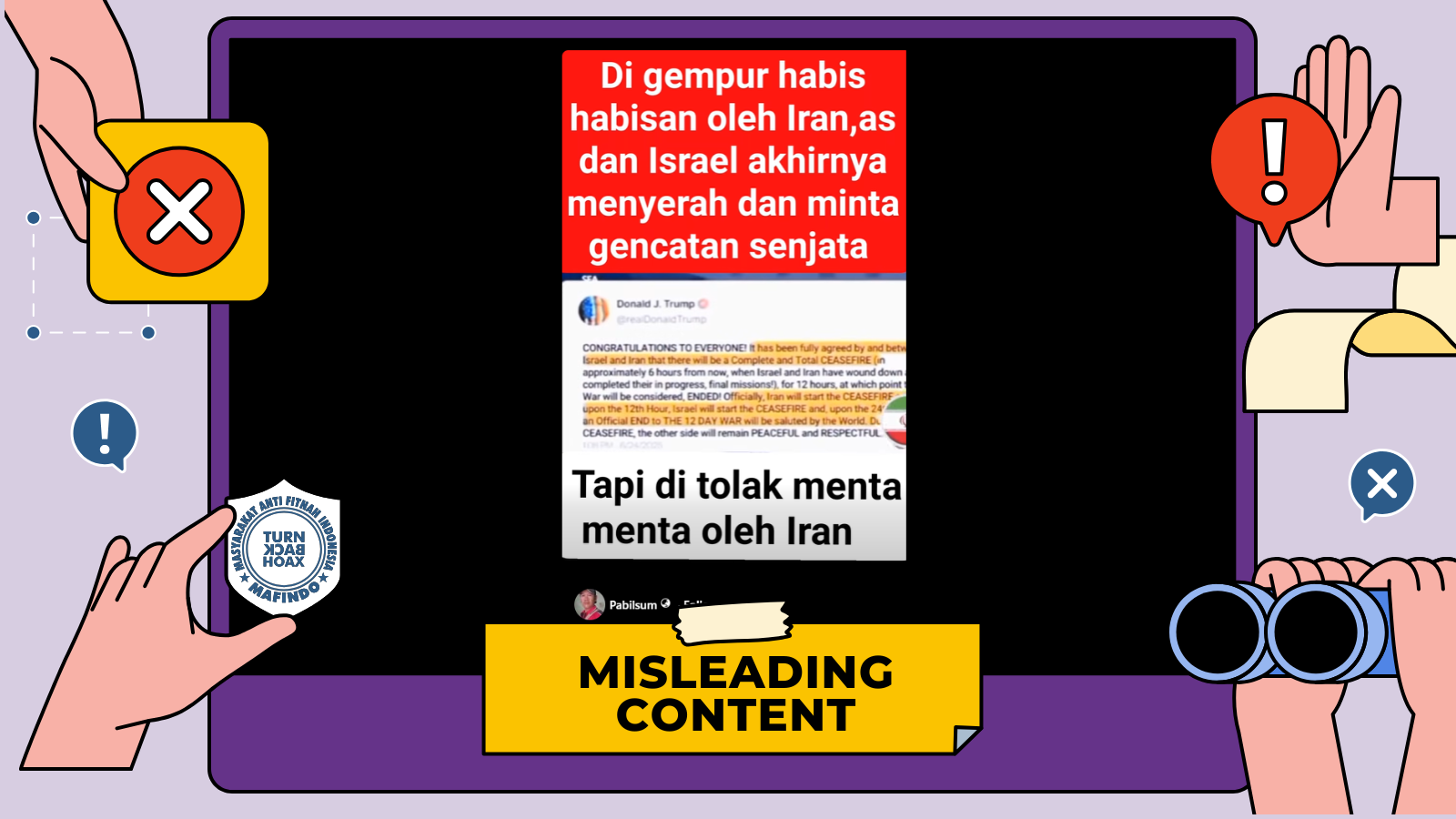 Video yang beredar merupakan rekaman lama yang memperlihatkan banjir di Kota Kiryat Gat, Israel, pada Desember 2025 akibat hujan deras yang dipicu Badai Byron. Dengan demikian, unggahan video berisi klaim dokumentasi “Israel banjir akibat serangan Iran” merupakan konten yang menyesatkan (Misleading Content).