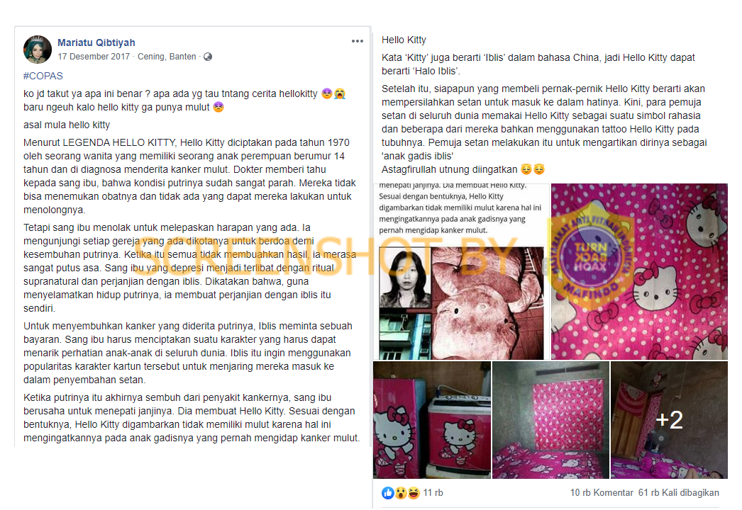* SUMBER membagikan foto hasil suntingan menggunakan gambar/foto yang sudah beredar sebelumnya di Internet.