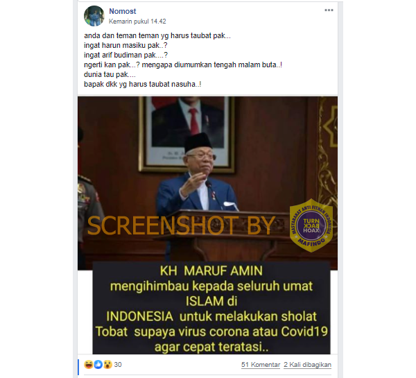 Informasi yang diunggah oleh akun Arya Menak Segoro yang mengatasnamakan ulama dari pondok pesantren Bata-Bata di Pamekasan, Jawa Timur, terbukti fitnah belaka alias disinformasi.
