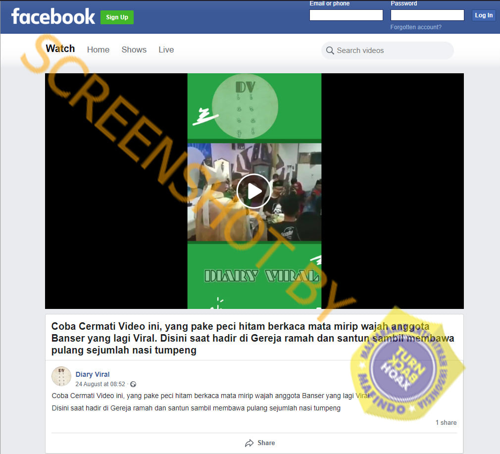 Terdapat foto seorang pria yang wajahnya babak belur serta narasi “Kepala dusun bagi sembako dihajar massa karena dia pili kasi,” dan “Seorang KADUS (kepala dusun) di hakimi warga sampai babak belur…akibat pembagian sembako corona tidak tepat sasaran…”