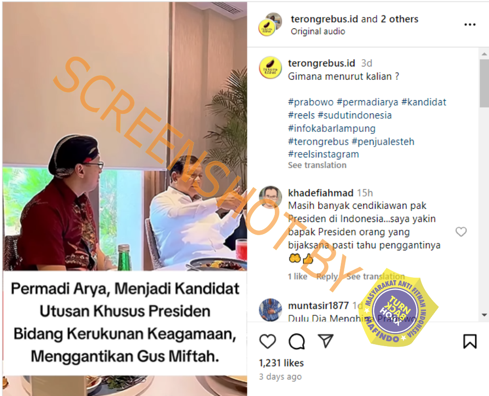 MAFINDO @ 27 Apr 2019: “Foto yang dibagikan oleh SUMBER adalah hasil suntingan”