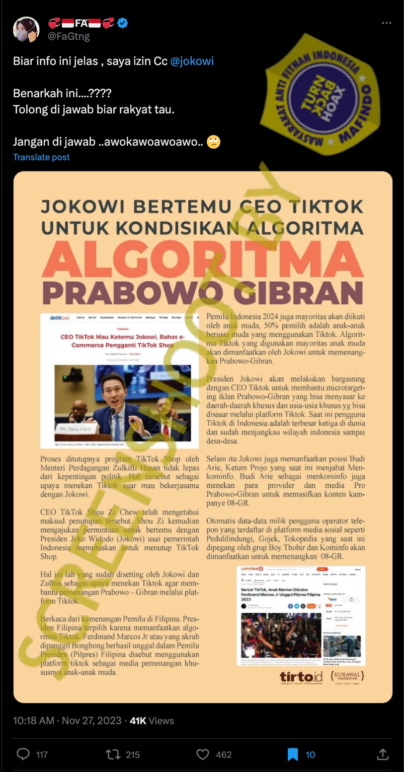 Akun Senopati Pamungkas (fb.com/100039118371369) mengunggah sebuah foto dengan narasi sebagai berikut: