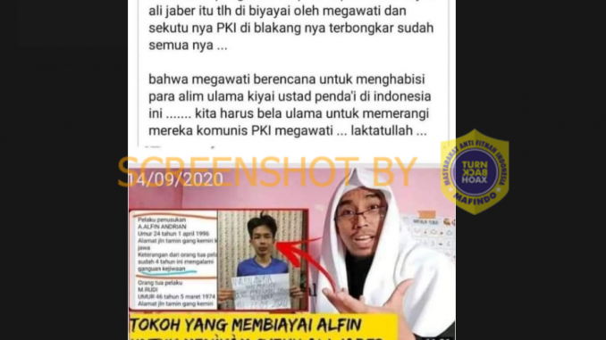 Faktanya, tidak terdapat pengakuan dari pelaku penusukan Syekh Ali Jaber bahwa ia dibiayai oleh Megawati dan PKI di video yang disertakan dalam unggahann itu. Tidak ada pula pemberitaan media bahwa pelaku penusukan Syekh Ali Jaber mengaku dibiayai Megawati dan PKI.