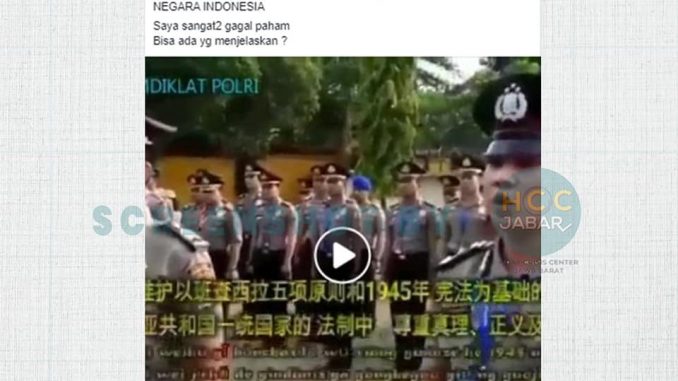 Akun Facebook Consky Alexander atau @consky.alexander mengunggah satu video berdurasi satu (1) menit yang berisi seorang polisi dalam suatu kegiatan yang mendemostrasikan bahasa Mandarin. Unggahan video itu pun diiringi narasi yang menilai bahwa pria berseragam polisi Indonesia tersebut bukanlah Warga Negara Indonesia atau WNI:
