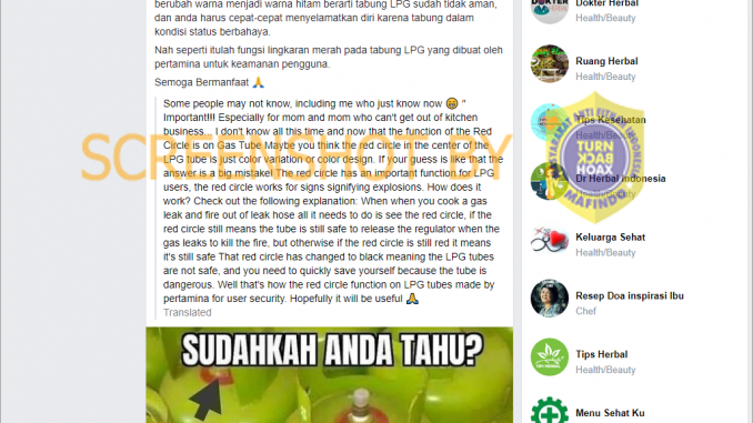 Akun Facebook DR. Oz Indonesia membagikan informasi pada 29 September 2020 tentang lingkaran merah pada tabung gas elpiji yang berfungsi sebagai rambu-rambu yang menandakan ledakan dan akan berubah menjadi warna hitam yang menandakan tabung gas elpiji sudah tidak aman.