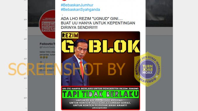 [SALAH] UU ITE Hanya Menjerat Pelaku Pengkritik Rezim Jokowi