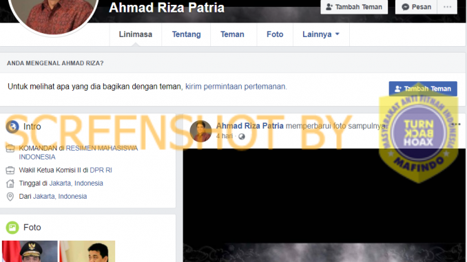 [SALAH] Akun Facebook Wagub DKI Jakarta “Ahmad Riza Patria”