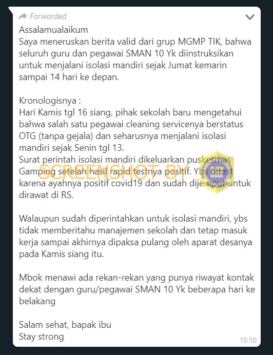 Berdasarkan data yang terkumpul dapat disimpulkan bahwa, postingan oleh akun Yunda adalah HOAX dan termasuk kategori Konten yang Menyesatkan.