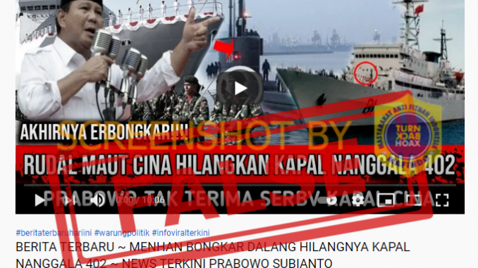 Beredar video berjudul “BERITA TERBARU ~ MENHAN BONGKAR DALANG HILANGNYA KAPAL NANGGALA 402 ~ NEWS TERKINI PRABOWO SUBIANTO” yang diunggah di kanal Youtube WARUNG POLITIK pada 24 April 2021.